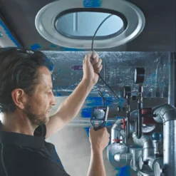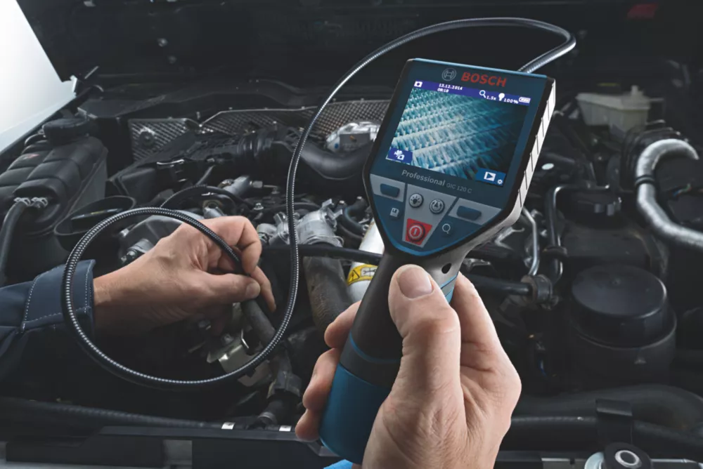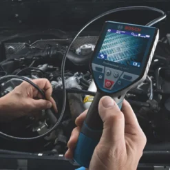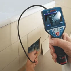Professional inspection camera designed for inspecting and documenting hard to reach areas. Features a large 3½” display for a comprehensive view. “Up is Up” function automatically rotates the image to the correct position, ensuring optimum orientation at all times. Pictures and video can be saved on micro SD card and transferred via micro USB for easy documentation. 1.2m long camera cable with narrow 8.5mm diameter camera head give easy access to difficult inspection areas. Quick connector for easy removal of the camera head and compact storage. Bright LED worklight provides illumination in dark environments. Can be powered by a rechargeable 1.5Ah Li-ion battery or 4 x AA batteries. Supplied with L-Boxx for safe storage.