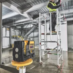 Tough self-levelling multi-line laser with rechargeable 12V battery platform and integrated magnetic pivoting base. Projects both horizontal and vertical lines. Locking pendulum to help prevent damage to internal components. Permanent pulse-mode enables connection to a receiver (not supplied). Supplied in a heavy duty case.