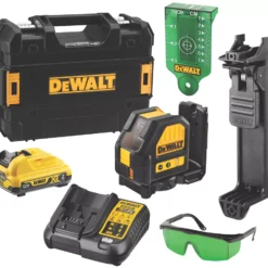 Tough self-levelling cross-line laser with integrated magnetic pivoting base. With bright green beam for excellent visibility up to 30m or 60m when used with a detector. Locking pendulum to help prevent damage to internal components. Battery charge indicator and variable blink sequence for manual mode. Uses 12V XR Li-ion batteries.