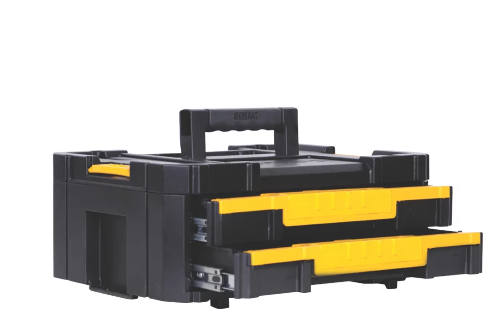 Shallow drawer storage unit with removable dividers for organising and storing small parts and accessories.