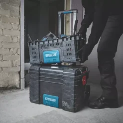 Practical and durable, ideal for storing a variety of tools and accessories, but also bulky items. The open-top design allows easy identification of contents in the crate for quick access to the correct tool, with convenient metal handles for easier transport. Connecx system allows connection to other products in the range, including tool boxes and organisers.