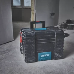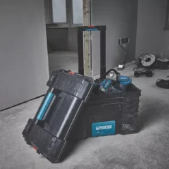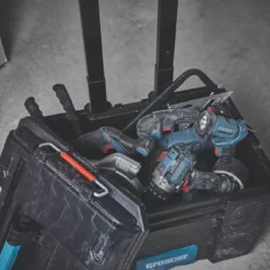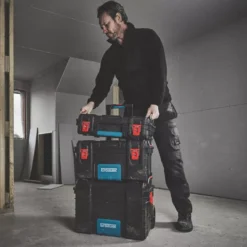 Easily take hand tools, power tools and tool accessories around the site or around the house. This spacious tool box features an integrated tool bar so preferred tools are easily in reach. Supplied with rubber-coated wheels, metal telescopic handle and metal stacking latches. Connecx system enables connection to other products in the range, including crates and organisers.