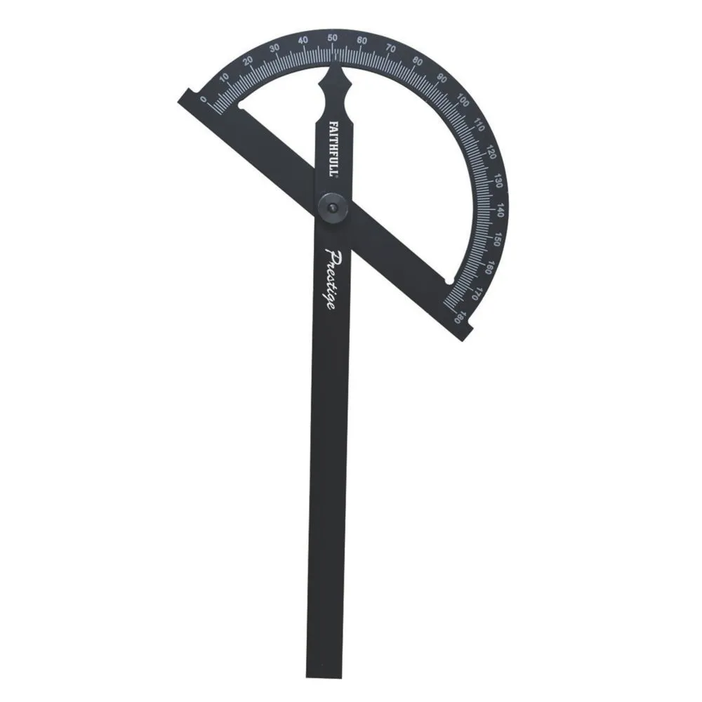 Can be used to determine existing angles, as well as creating new angles, to set bevels and transfer angles from one surface to another. Knurled thumb-nut to lock at the chosen angle. CNC-machined and laser-engraved graduations from 0-180° for accuracy. Black anodised finish for enhanced corrosion protection. Supplied in EVA foam storage tray.