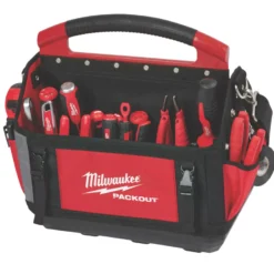 Durable, 40cm tote tool bag. Part of the PACKOUT modular storage system. Constructed with ballistic material and all-metal hardware. Features 32 pockets to organise tools and accessories.