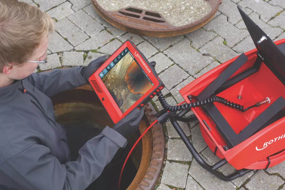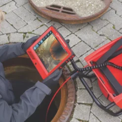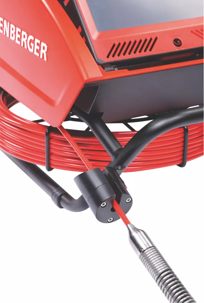 Inspection camera for pipes from 40 to 300mm diameter. Supplied with a 30m changeable cable reel with a 30mm self-levelling camera head that offers a working range of 70 to 150mm pipe diameter. Features a large removable touchscreen and integrated software for documentation, picture editing, change of camera settings and menu guidance. With the ability of direct recording of pictures and videos in JPG / AVI format for documentation of damage. Compatible with Roscope i2000.
