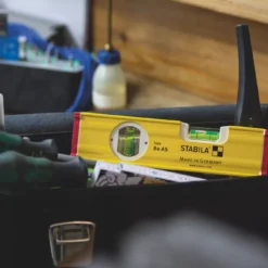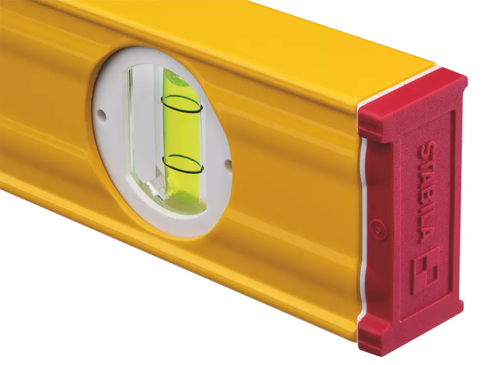 Aluminium rectangular profile with reinforced ribs, together with Stabila installation technology, ensures accuracy and a long service life. Vials and measuring surfaces align perfectly during the production process and are permanently connected. Vials are highly transparent with hard-wearing acrylic glass and precision-ground inner contours and fluorescent liquid.