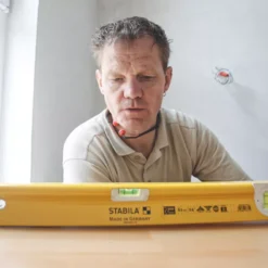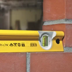 Robust and lightweight spirit level, developed to withstand the toughest building site conditions. Easy to use and twist-resistant through a 5-chamber ‘R’ profile. Features extra-wide measuring surface, preventing tipping over during use, shock-absorbing end caps with slip-stopper, handrail with full-length finger groove for easy grip and 3 accurate marking and cutting edges.
