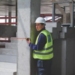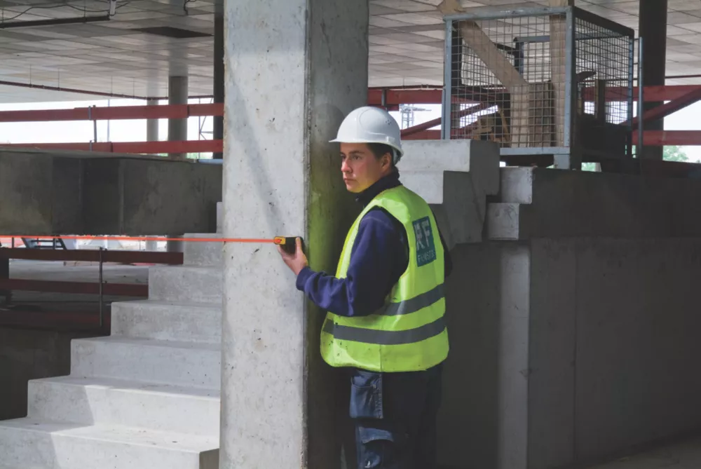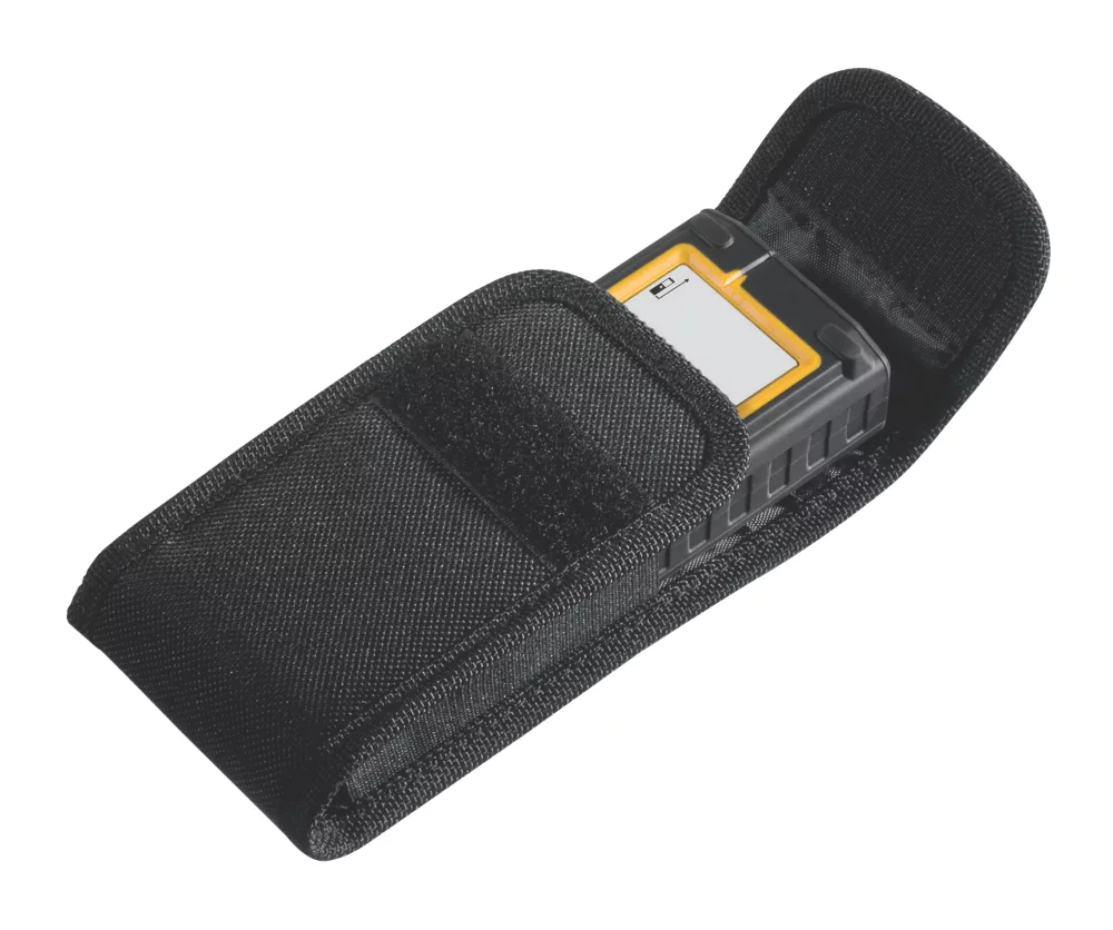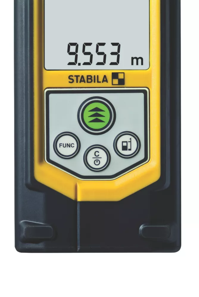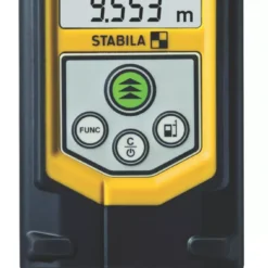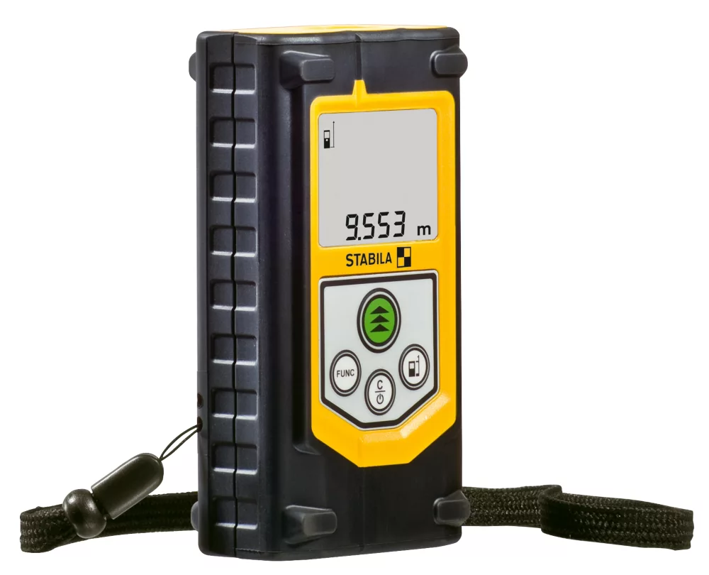 Extremely compact laser distance measurer. With 8 measuring functions: length, area, volume, continuous measurement, Pythagoras with 2 and 3 measuring points and minimum and maximum tracking. Rapid measuring results and easy operation ensure trouble-free work. Large digits and display lighting make the measurer easy to read and operate. Impact-resistant housing with shock-absorbent, soft-grip casing. Integrated target tool (notch and bead principle) allows targets to be located, even at great distances. Supplied with a belt pouch and wrist strap.