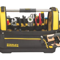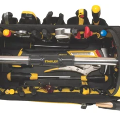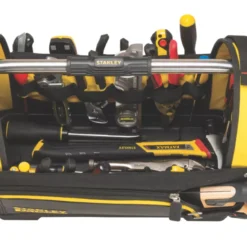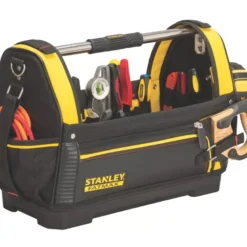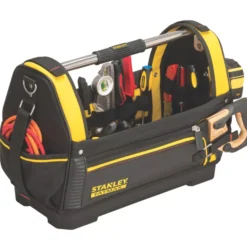 Tote bag allows great access for hand tools. Internal and external pockets allow for easy tool storage. Straps on frame allow levels or saws to be carried.