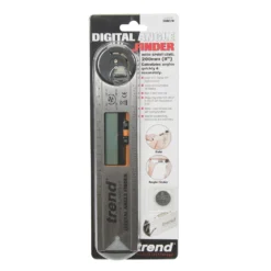 Digital angle finder with large aluminium body for stability and accuracy. Features clear LCD display and level vial. On/off, zero and absolute function buttons. Metric and imperial scales. Calculates angles 0-220° and will reach 360° if locking knob is removed. Ideal for marking out and checking angles.